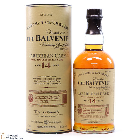 The Balvenie Caribbean Cask 14 year old has been matured in traditional oak whisky casks for 14 years, and then finished in casks that previously held Caribbean rum.