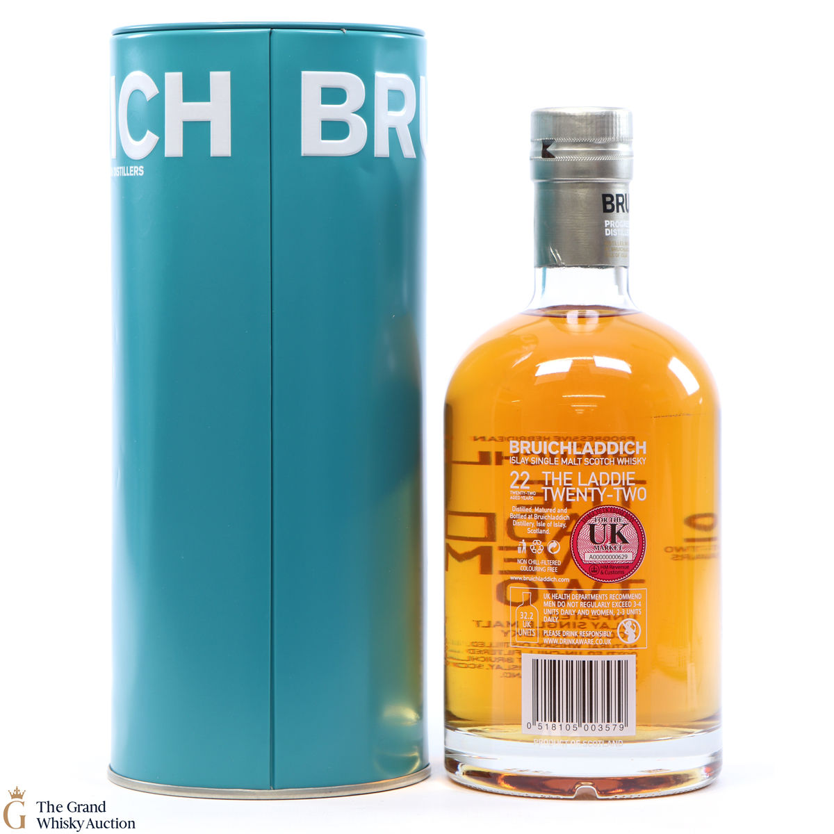 Incased within their unique Bruichladdich turquoise coloured tin comes this 22-year-old dram. The colour of the tin is said to mirror the colour of Loch Indaal.
