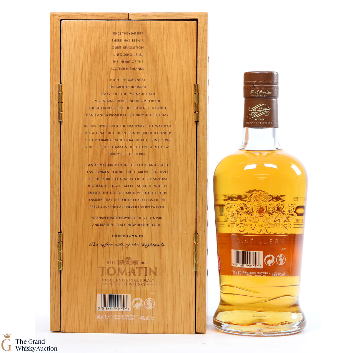 This Tomatin 30 year old single malt has been drawn from a combination of ex-bourbon and traditional oak casks and was bottled at 46%. This well-aged Highland single malt comes with a handsome bag & stunning wooden presentation case.