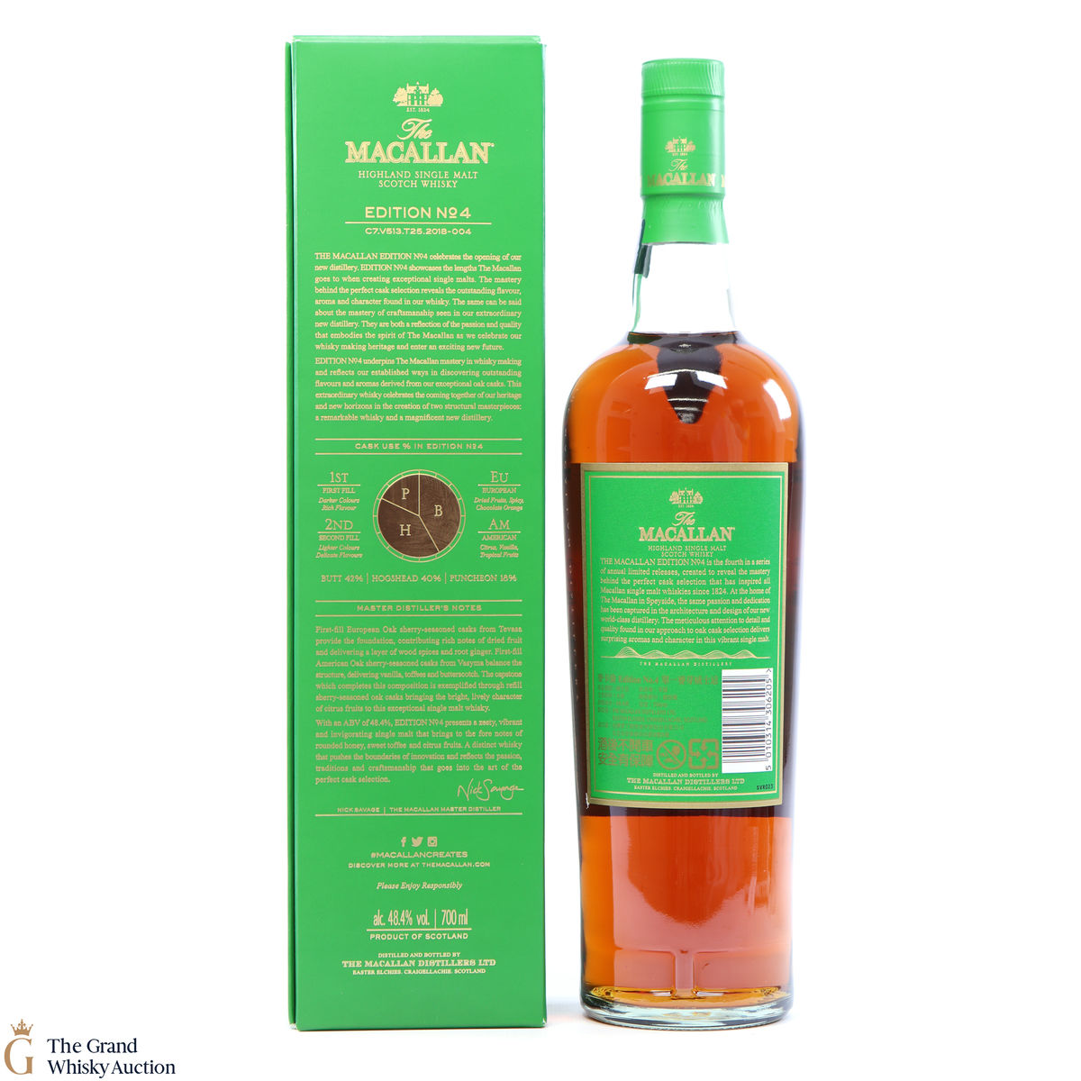 The fourth release in the Edition Series from The Macallan, this Speyside single malt is a celebration of the distillery's whisky making heritage, combining a unique selection of oak cask styles. Edition No.4 reflects the craftsmanship and pioneering design of the new Macallan distillery.