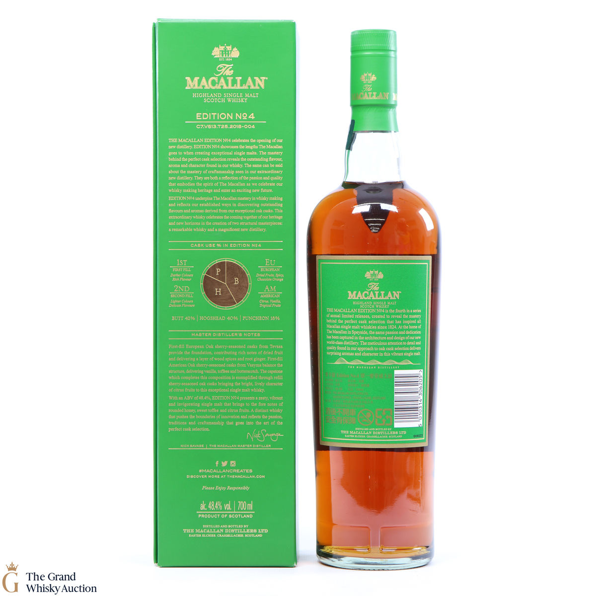 The fourth release in the Edition Series from The Macallan, this Speyside single malt is a celebration of the distillery's whisky making heritage, combining a unique selection of oak cask styles. Edition No.4 reflects the craftsmanship and pioneering design of the new Macallan distillery.