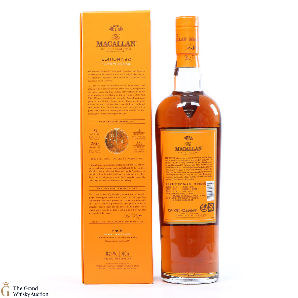 This is the second release from the Macallan Edition series. Edition No.2 is a collaboration between Macallan's master blender Bob Delgarno and legendary Spanish chefs Joan, Josep and Jordi Roca. The Rocas are the three brothers behind El Celler de Can Roca (named Best Restaurant in the World twice by Restaurant magazine). This single malt was drawn from a combination of sherry puncheons, butts and refill hogsheads.