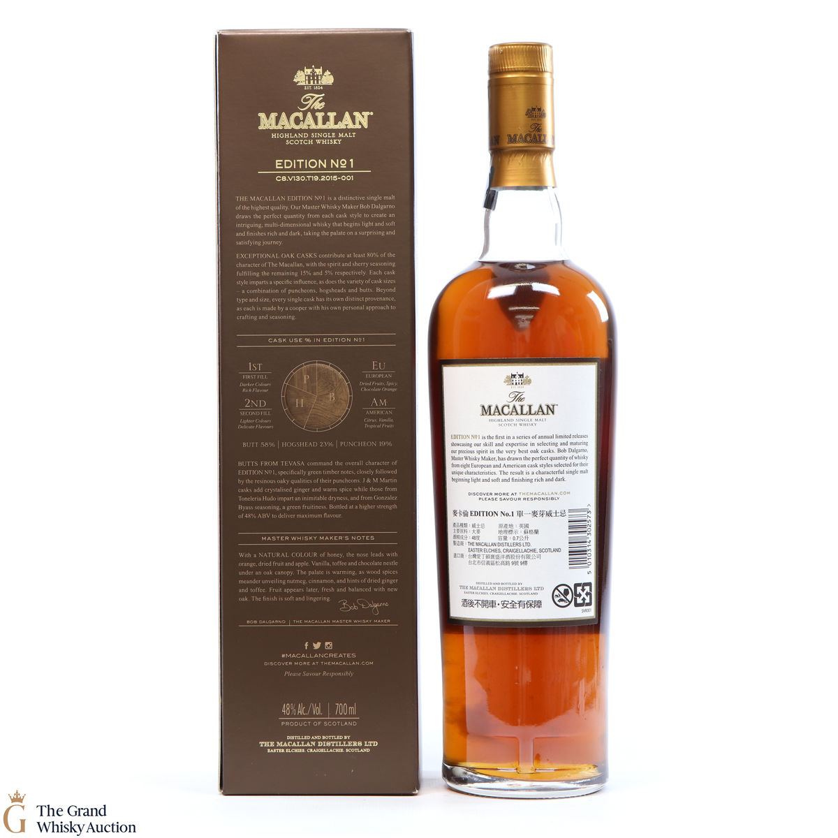The Macallan Edition No. 1 is the debut expression in the Edition Series. This is a limited edition drawn from eight European and American oak cask styles selected for their unique characteristics.