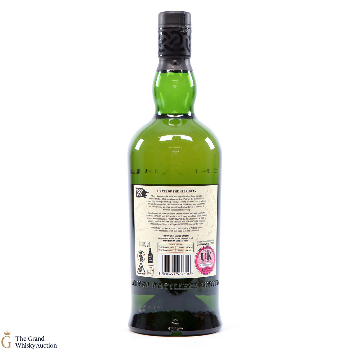 A bottling in honour of the legendary Distillery Manager and Committee Chairman Mickey who is departing after a great 13 years. Captain of the good ship, he is now retiring and so this special bottle has been created to commemorate his service. A special treasure indeed fit for the saltiest of seadogs.