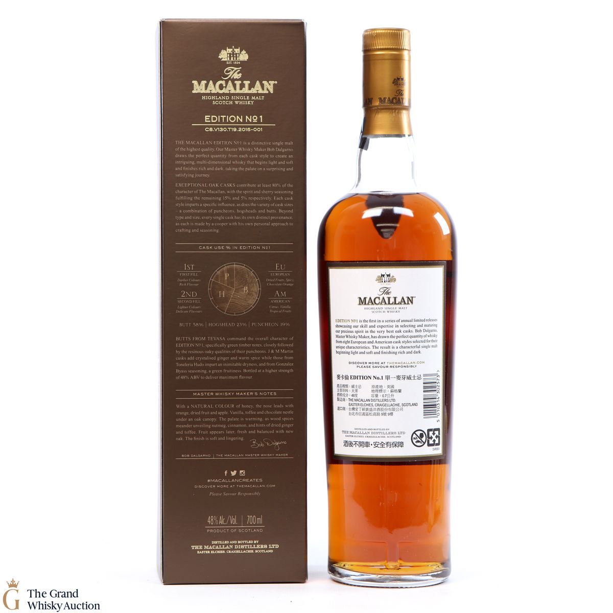 The Macallan Edition No. 1 is the debut expression in the Edition Series. This is a limited edition drawn from eight European and American oak cask styles selected for their unique characteristics.