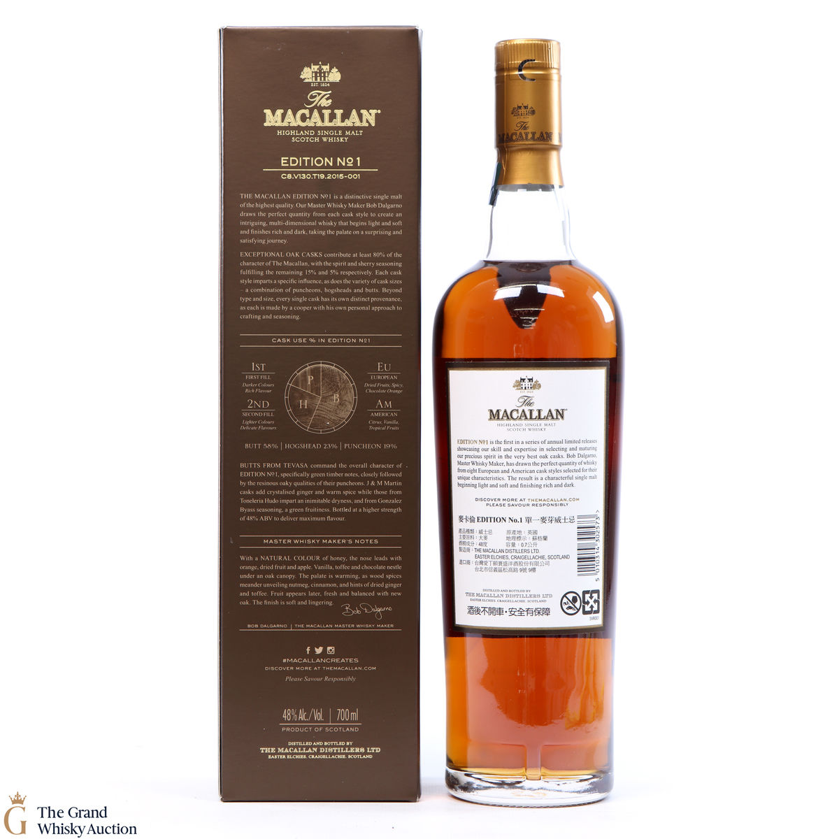 The Macallan Edition No. 1 is the debut expression in the Edition Series. This is a limited edition drawn from eight European and American oak cask styles selected for their unique characteristics.
