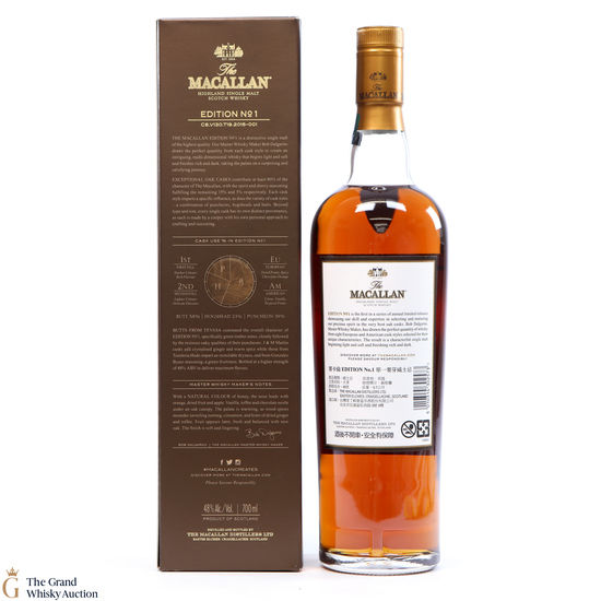 The Macallan Edition No. 1 is the debut expression in the Edition Series. This is a limited edition drawn from eight European and American oak cask styles selected for their unique characteristics.