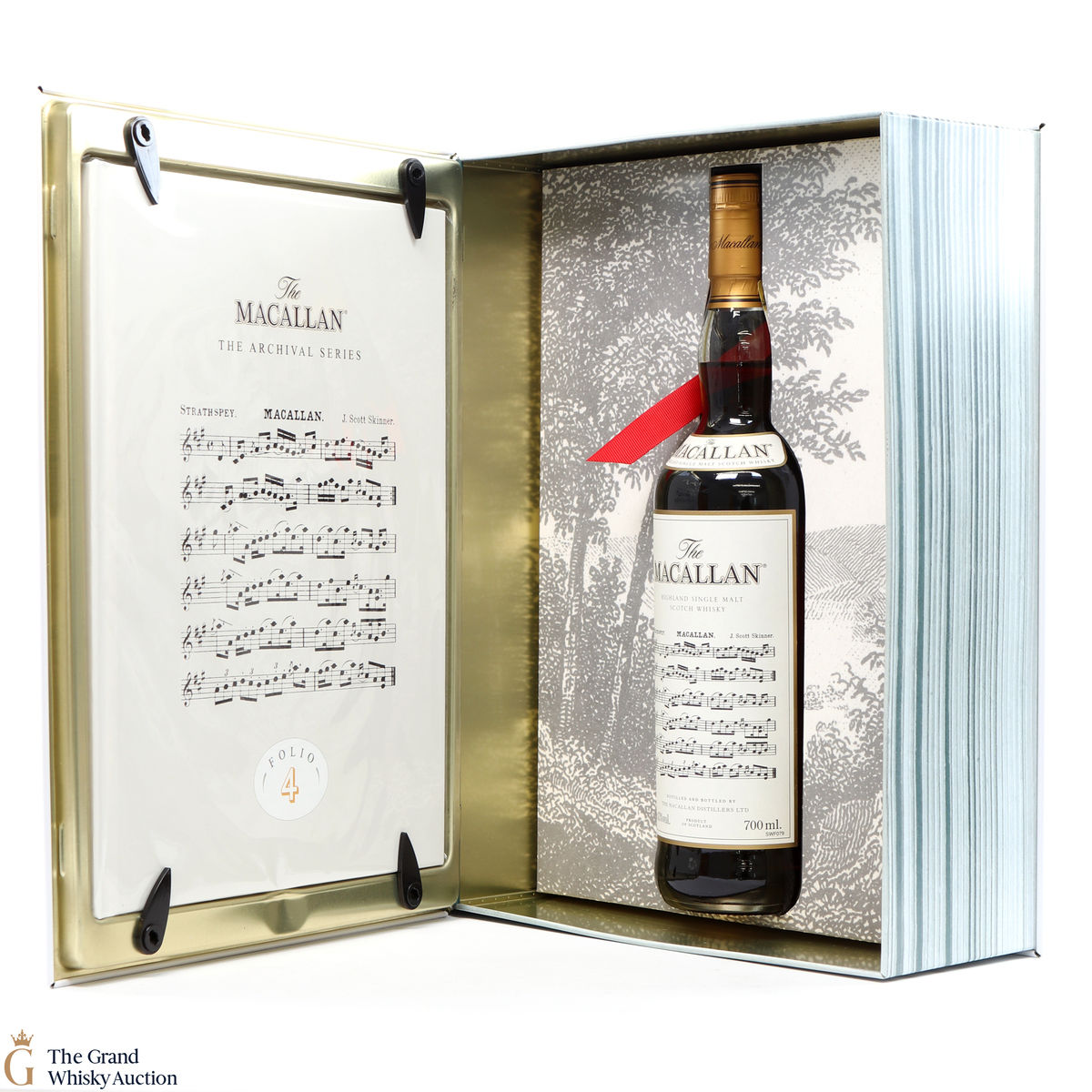 The fourth edition in the Archival Series from The Macallan. Folio 4 remembers the legendary advertising campaigns of the 1970s, 1980s and 1990s that brought The Macallan to the public’s attention outside of Scotland. It is presented in a beautiful book shaped, tin case. It features an advertisement including a Strathspey composed by James Scott Skinner (1843-1927). The advert notes that Skinner was so moved by his favourite malt he created a unique piece of music featuring his signature lilting notes with the simple catchphrase: “The Macallan. The Malt.”