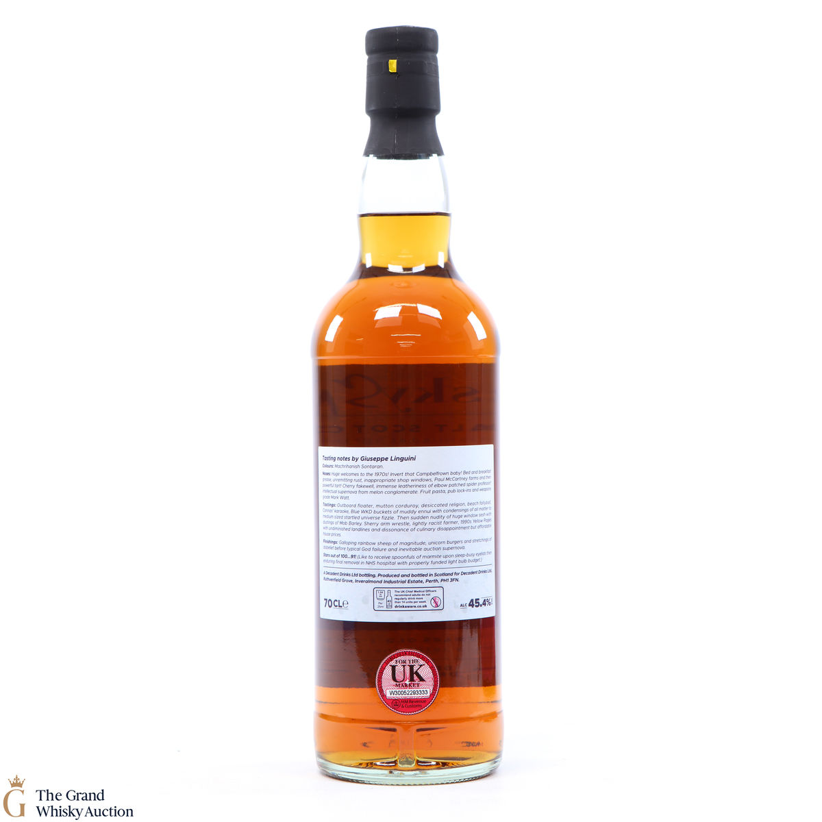 This special release is from the very quickly growing Decedent Drinks company. Their releases are always highly anticipated and no more so than this 25 Year Old refill Sherry hogshead that was distilled in 1994 and bottled in 2020. At the back of the bottle we have the tasting notes of the bottle by Giuseppe Linguini.