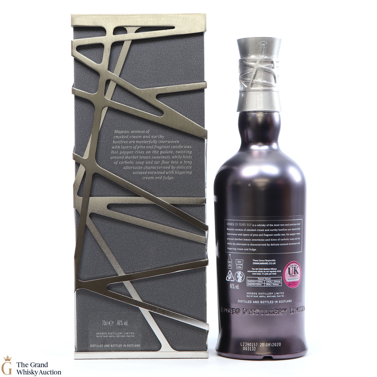 This guaranteed 25 Year old by Ardbeg has been produced from incredibly rare casks which were filled during some of the distillery's darkest day's. Known for its peated whiskies this is one of Ardbegs oldest aged whisky to join the core range. This expression proves that age cannot tame Ardbeg’s smoky power, but also that it can yield some of the most complex and majestic flavours ever from Ardbeg Distillery.