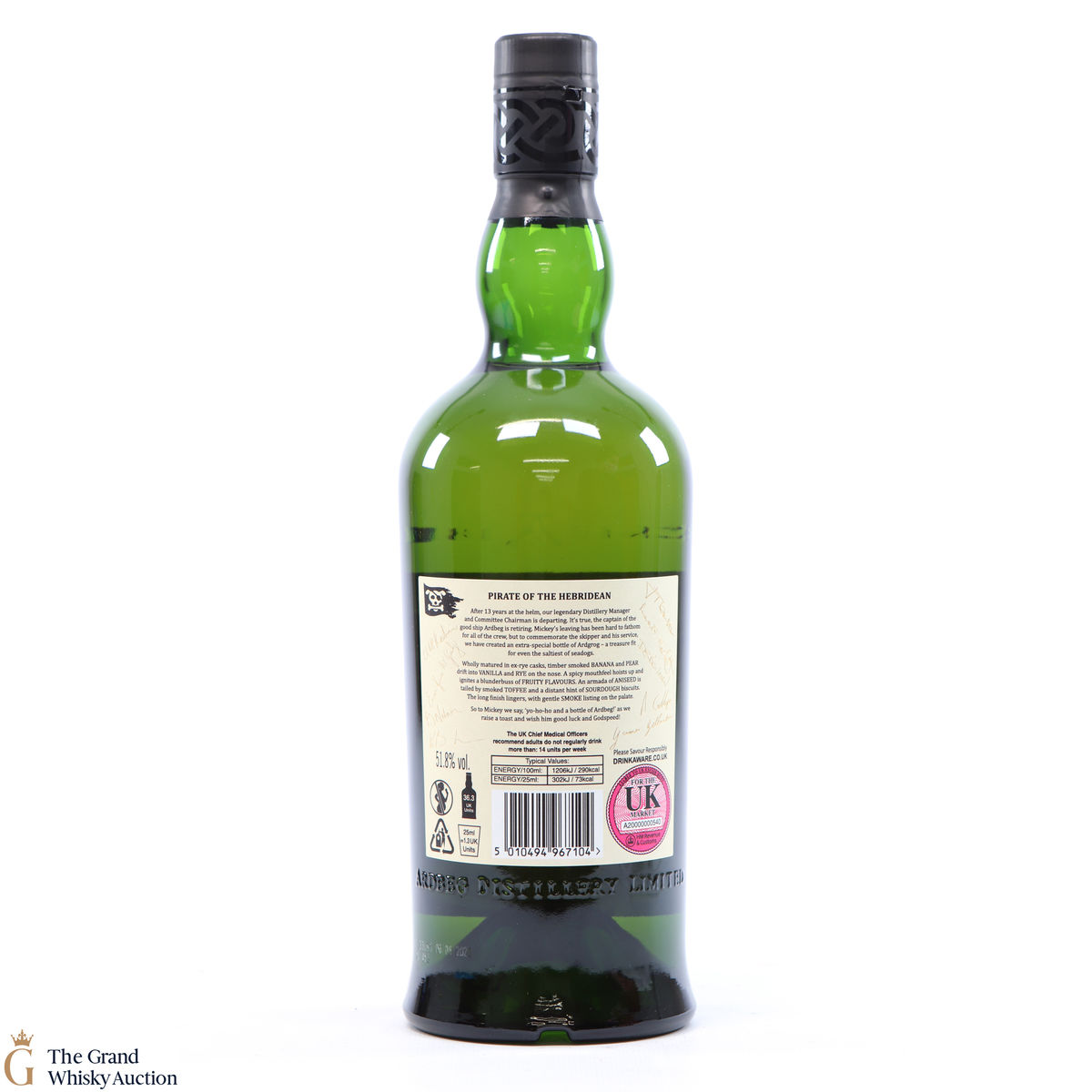 A bottling in honour of the legendary Distillery Manager and Committee Chairman Mickey who is departing after a great 13 years. Captain of the good ship, he is now retiring and so this special bottle has been created to commemorate his service. A special treasure indeed fit for the saltiest of seadogs.