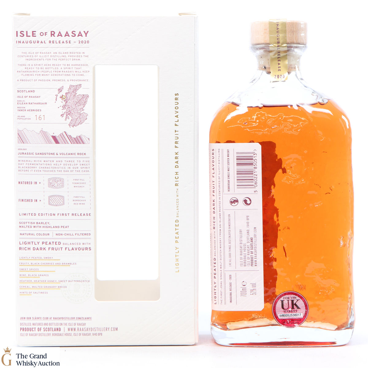 The inaugural release from the Isle of Raasay distillery is a limited edition release matured in first-fill American oak, and finished in 21 exclusive first fill Bordeaux red wine casks. They have created an elegant, lightly peated (15-20 Peat or Phenol Parts Per Million). Bottled at 52% and in a unique glass bottle which captures the island's geology.