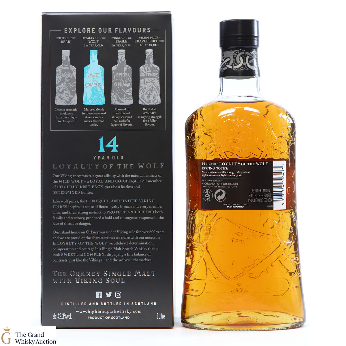 The 'Loyalty of the Wolf' by Highland Park is a 14-year-old single malt. This is a 1L bottling.