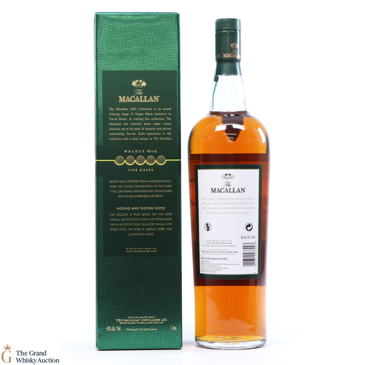 The Macallan Select Oak is crafted from a broad and unique selection of five casks which deliver a great smoothness, sweetness and depth. It is a lighter style of Macallan with sweet notes of butterscotch and vanilla.