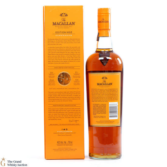 This is the second release from the Macallan Edition series. Edition No.2 is a collaboration between Macallan's master blender Bob Delgarno and legendary Spanish chefs Joan, Josep and Jordi Roca. The Rocas are the three brothers behind El Celler de Can Roca (named Best Restaurant in the World twice by Restaurant magazine). This single malt was drawn from a combination of sherry puncheons, butts and refill hogsheads.