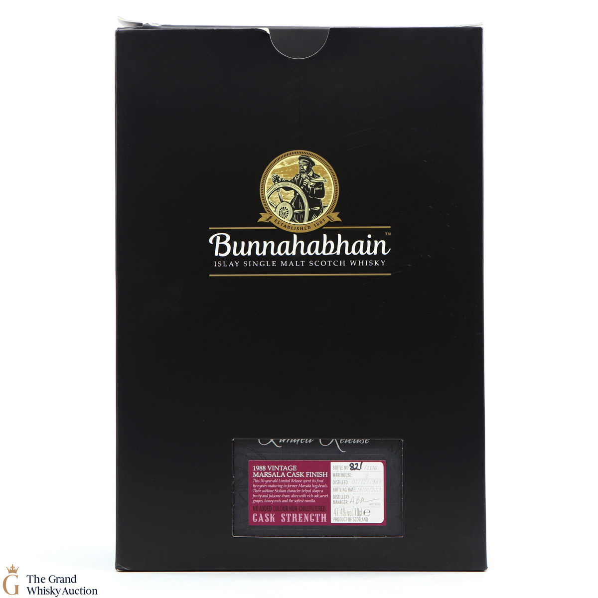 This 1988 vintage single malt from Bunnahabhain is extremely limited and is one of just 1116 bottles produced. Distilled in December 1988, and matured in warehouse 8, this single malt spent its final two years of maturation in marsala hogsheads.