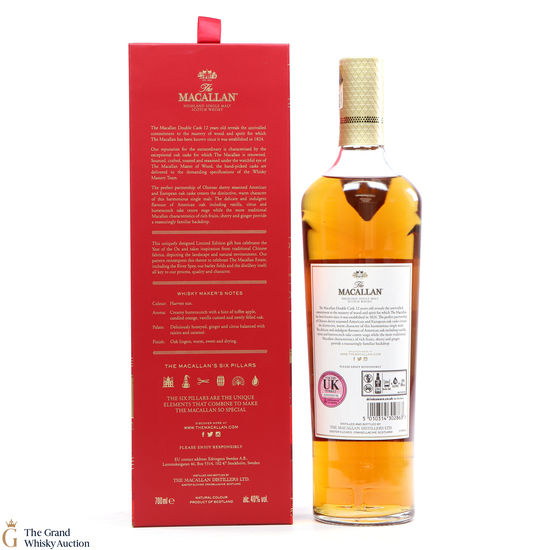 The decoration on the bottle and box is to celebrate 'The year of the Ox' which takes inspiration from the traditional Chinese fabrics, landscapes and natural environment.