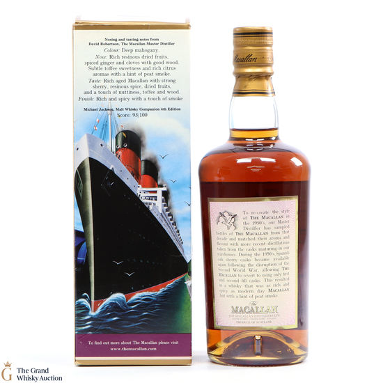 During the 1950s, Macallan whisky was as rich and spicy as modern-day Macallan, but with a hint of peat smoke. This was due to Spanish oak sherry casks becoming available again, following the disruption of the second world war. Macallan was ale to revert to using only first and second fill casks. 50cl, 40%.