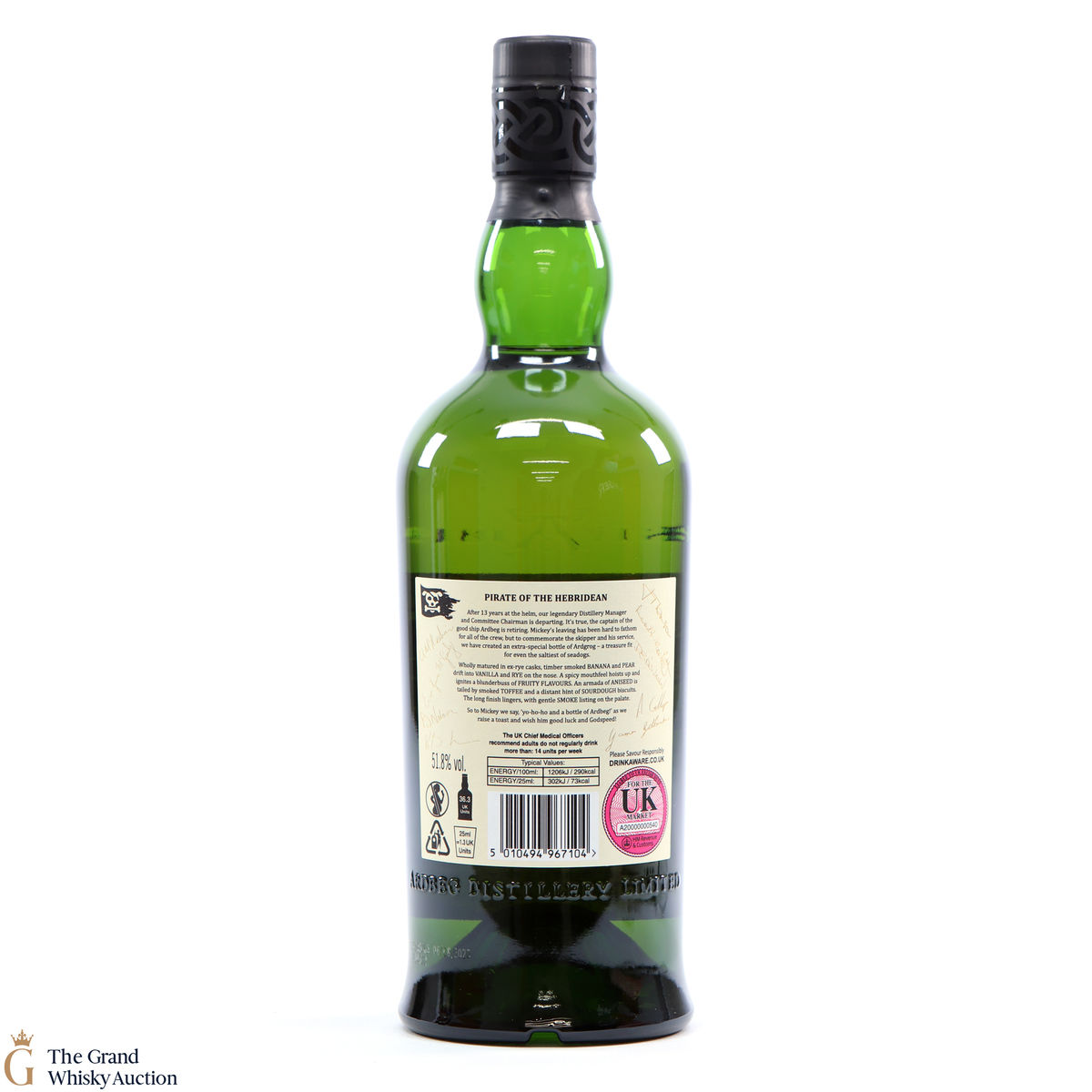 A bottling in honour of the legendary Distillery Manager and Committee Chairman Mickey who is departing after a great 13 years. Captain of the good ship, he is now retiring and so this special bottle has been created to commemorate his service. A special treasure indeed fit for the saltiest of seadogs.