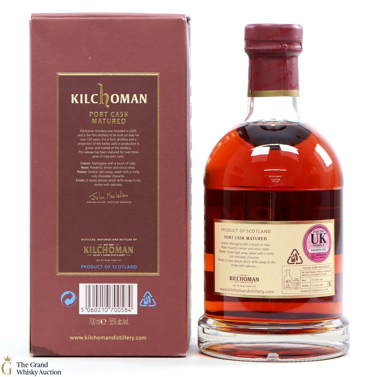 The first release of port-cask-matured single malt by Kilchoman. Distilled in 2011, it was matured in ex-ruby-port casks and bottled in August 2014.