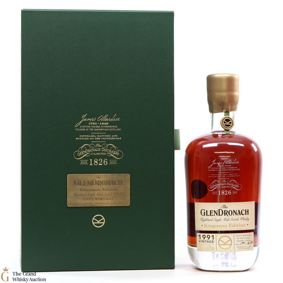 GlenDronach partnered with 20th Century Fox to mark the release of the "Kingsman The Golden Circle" movie with The GlenDronach Kingsman Edition 1991 Vintage in 2017. Fully matured in the finest of sherry casks this bottle is one of 2137 bottles produced.