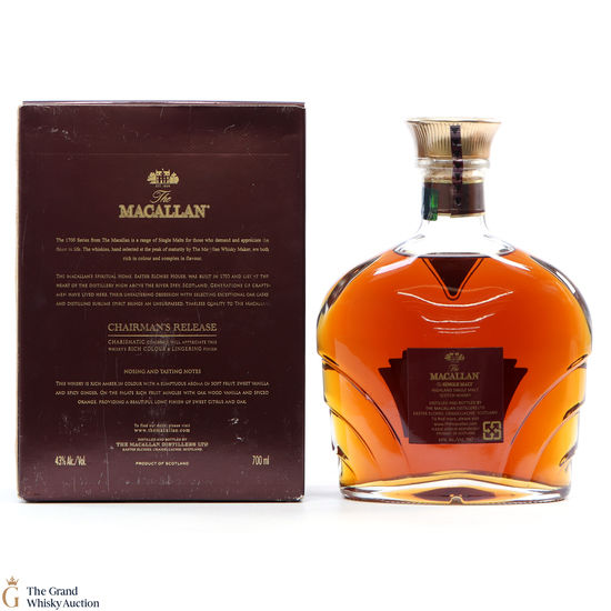 The Chairman's Release is considered the flagship of Macallan's 1700 series. The series takes its name from the year that Easter Elchies House, the home of The Macallan, was built.