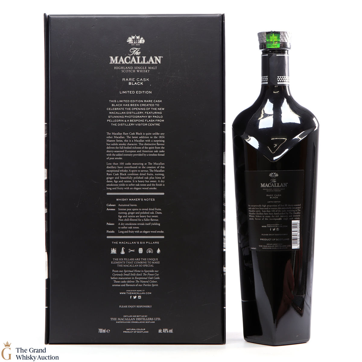The Macallan Rare Cask Black Limited Edition was released to celebrate the opening of the new Macallan Distillery. It is part of the Macallan 1824 series and features stunning photography by Paolo Pellegrin and a bespoke flask from the Distillery Visitor Centre. The release was a limited edition of 7000 sets, which were only available at airports.