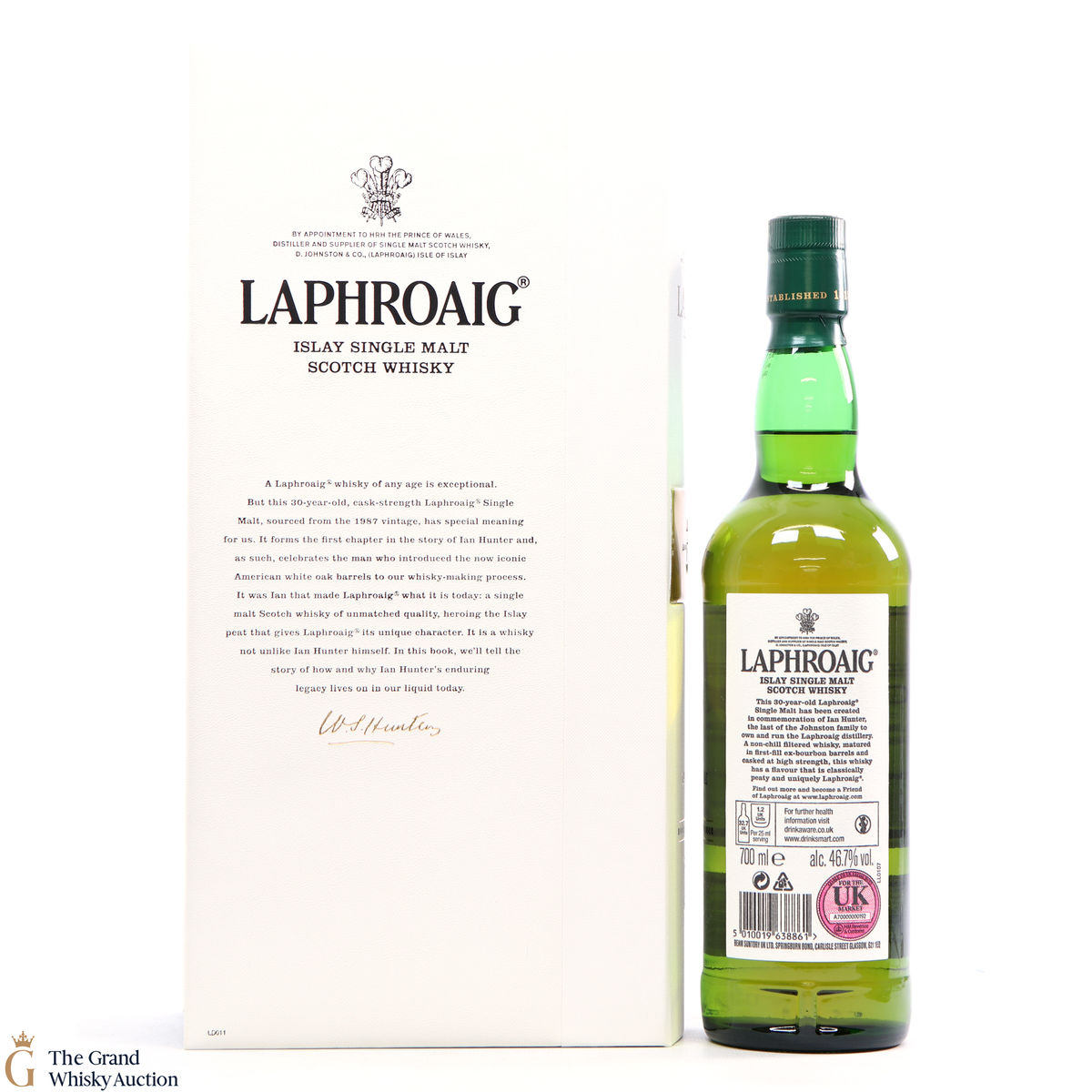 This is a 30 year old cask strength bottling from the 1987 vintage. This bottle forms the first chapter to the story of Ian Hunter and celebrates the man who introduced the iconic American white Oak barrels to the whisky making at Laphroaig. It is said that it was Ian who made Laphroaig what it is today.