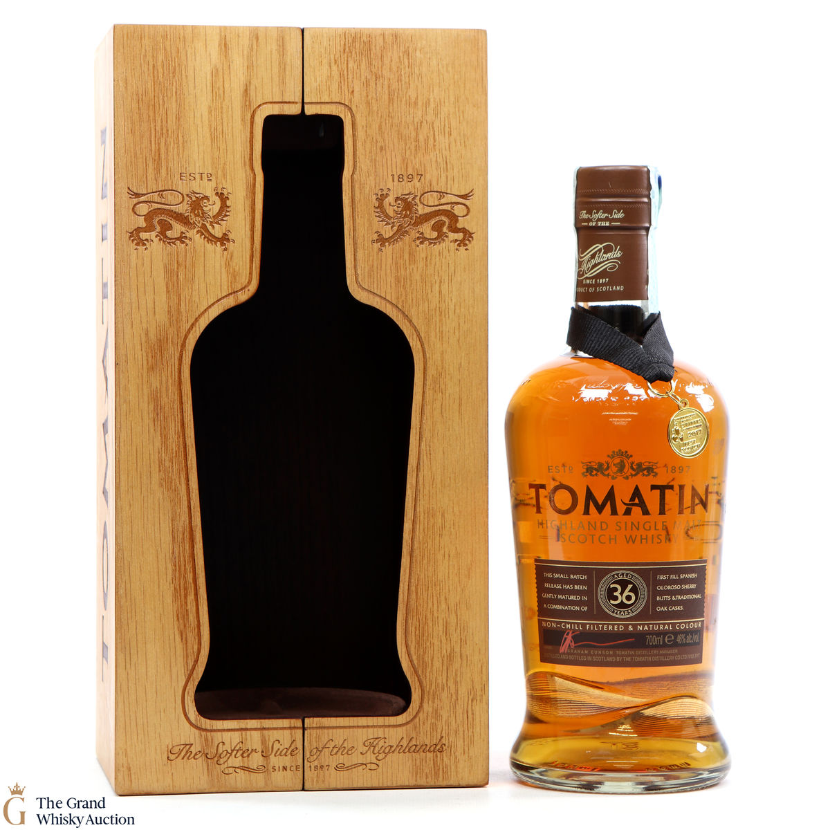 This Tomatin single malt whisky has been gently matured in a combination of first fill Spanish Oloroso sherry butts and traditional oak casks for over 36 years.