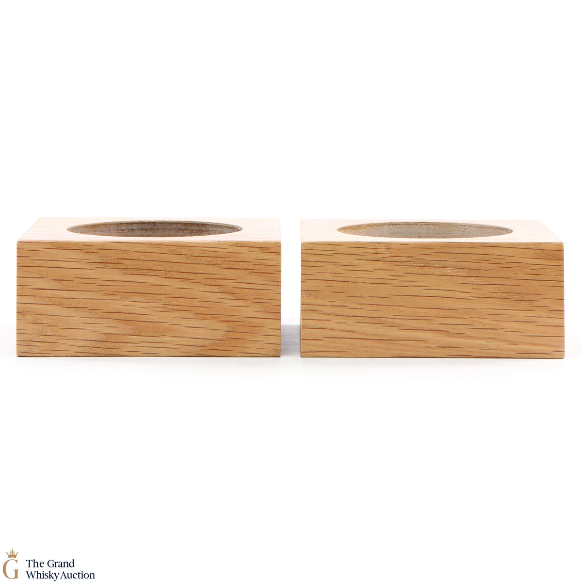 Two wooden Glenrothes branded plinths. Plinths are both 12cm x 12.5cm.