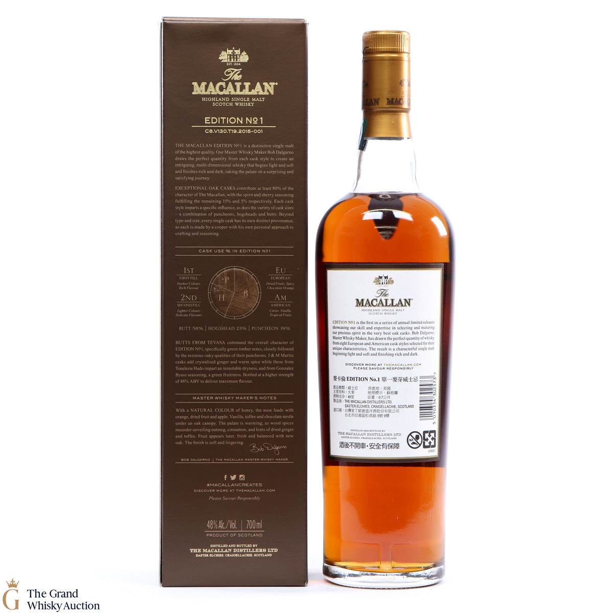The Macallan Edition No. 1 is the debut expression in the Edition Series. This is a limited edition drawn from eight European and American oak cask styles selected for their unique characteristics.