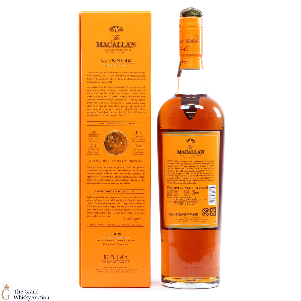 This is the second release from the Macallan Edition series. Edition No.2 is a collaboration between Macallan's master blender Bob Delgarno and legendary Spanish chefs Joan, Josep and Jordi Roca. The Rocas are the three brothers behind El Celler de Can Roca (named Best Restaurant in the World twice by Restaurant magazine). This single malt was drawn from a combination of sherry puncheons, butts and refill hogsheads.