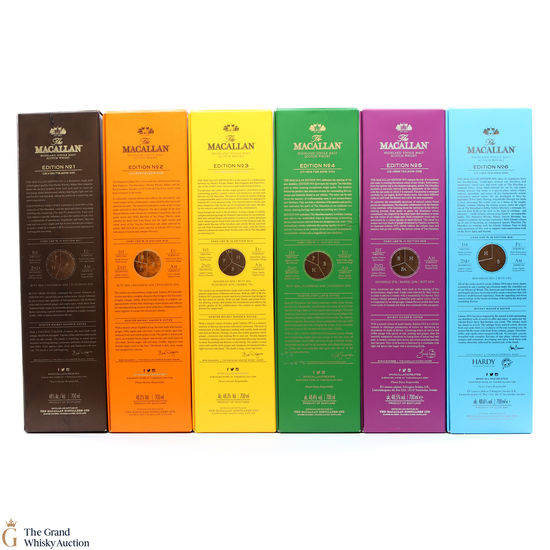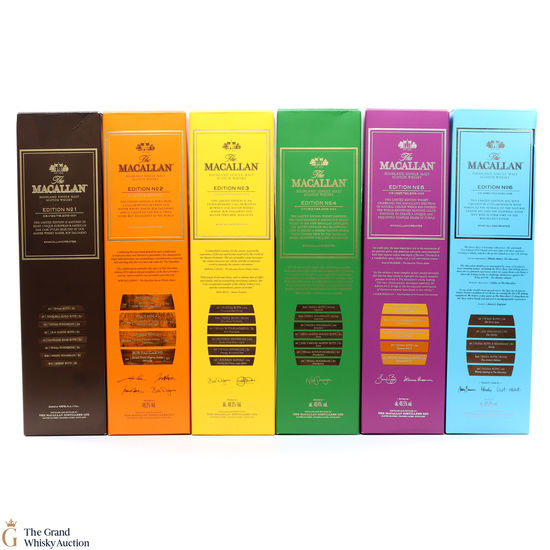 This lot brings together the Macallan Edition set to date, comprising of Edition no. 1, 2, 3 4, 5 & 6 in the annual limited edition series.
