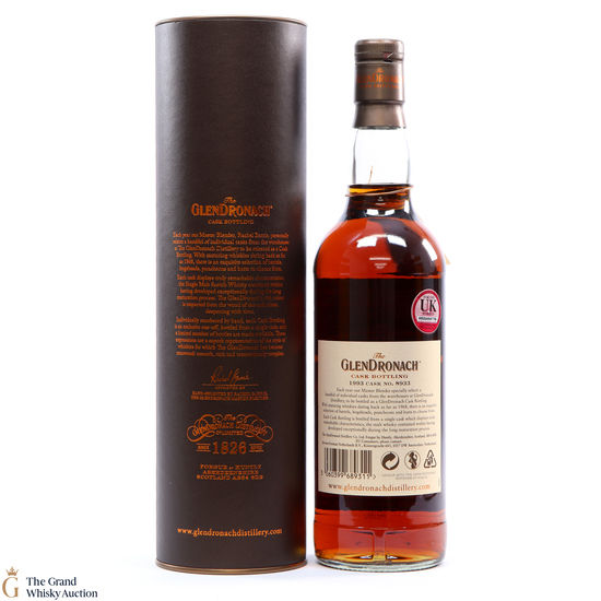 Aged in a single Pedro Ximenez Puncheon for 26 years, this 1993 vintage Glendronach was exclusively selected and bottled for the Whisky Exchanges 20th anniversary.