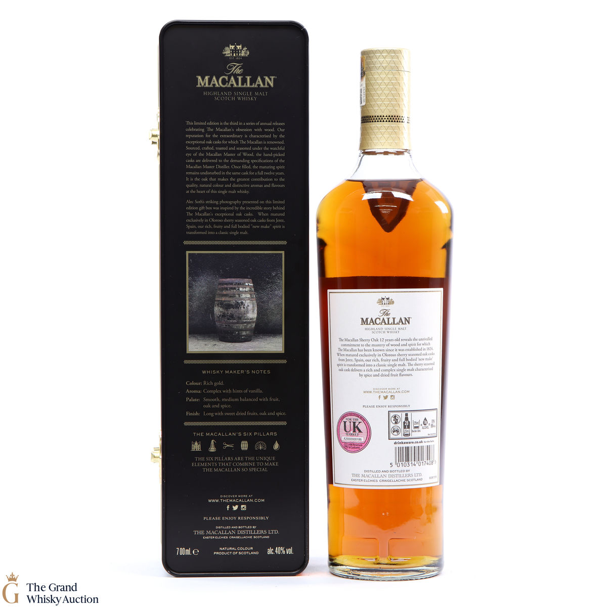 This limited-edition Macallan 12 year old was exclusively matured in sherry seasoned oak casks, from Jerez. It comes in a metal presentation tin featuring an image of a barrel shot by Magnum photographer Alex Soth.