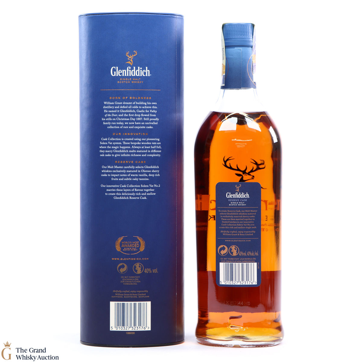 This is a 1L bottling of Glenfiddich Reserve Cask. It has been matured in distinctive Spanish sherry casks to create a rich and mellow flavour, each individual cask is hand-selected for its flavour profile by Glenfiddich Malt Master, Brian Kinsman. Once selected, casks are married in their unique Solera vat.