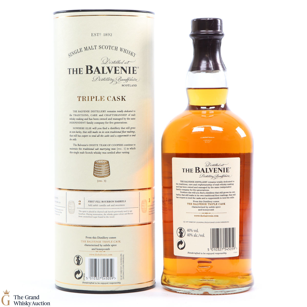 The 12 year old Triple Cask expression is part of Balvenie's travel retail range. It is made with whisky matured in three different types of cask, namely first-fill American oak barrels, traditional refill casks and first-fill Oloroso Sherry butts. Following the maturation, the whisky is married together to create a cohesive, flavoursome expression packed with orchard fruit, custard cream and cinnamon spice. This is a 1L bottling.