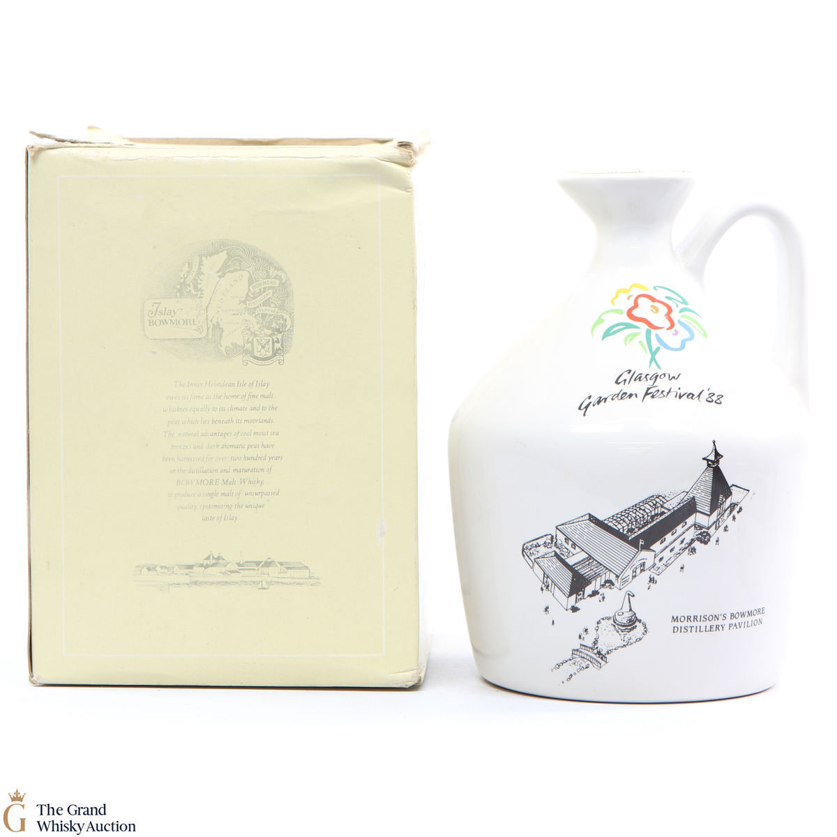 A rare ceramic Bowmore released for Glasgow Garden Festival in 1988, with Bowmore 15-year-old inside, which has hints of white chocolate, exotic fruits and pepper.