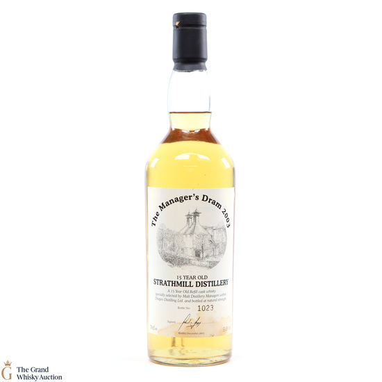 This 15-year-old single malt from the Strathmill Distillery is part of The Manager's Dram series exclusively for Diageo employees (formerly United Distillers). It was bottled at 53.5%.