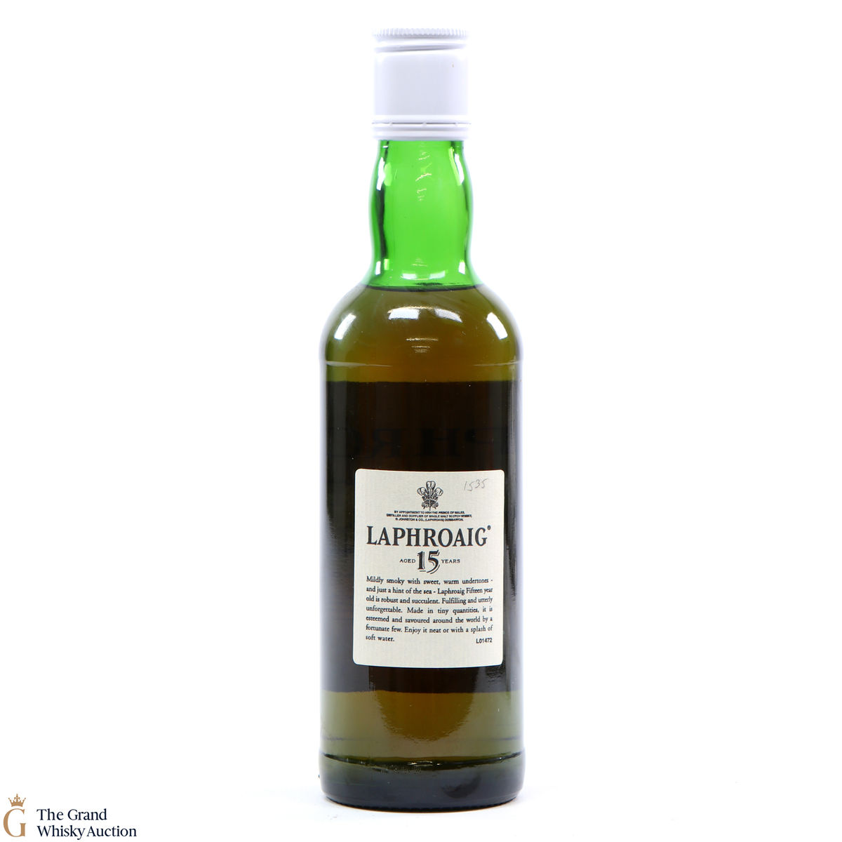 A smart old bottle of Laphroaig, bottled before the Royal Warrant in 1994. Laphroaig 15 Year Old is smoother than the robust 10-year-old. This is a half bottle - 33.33cl