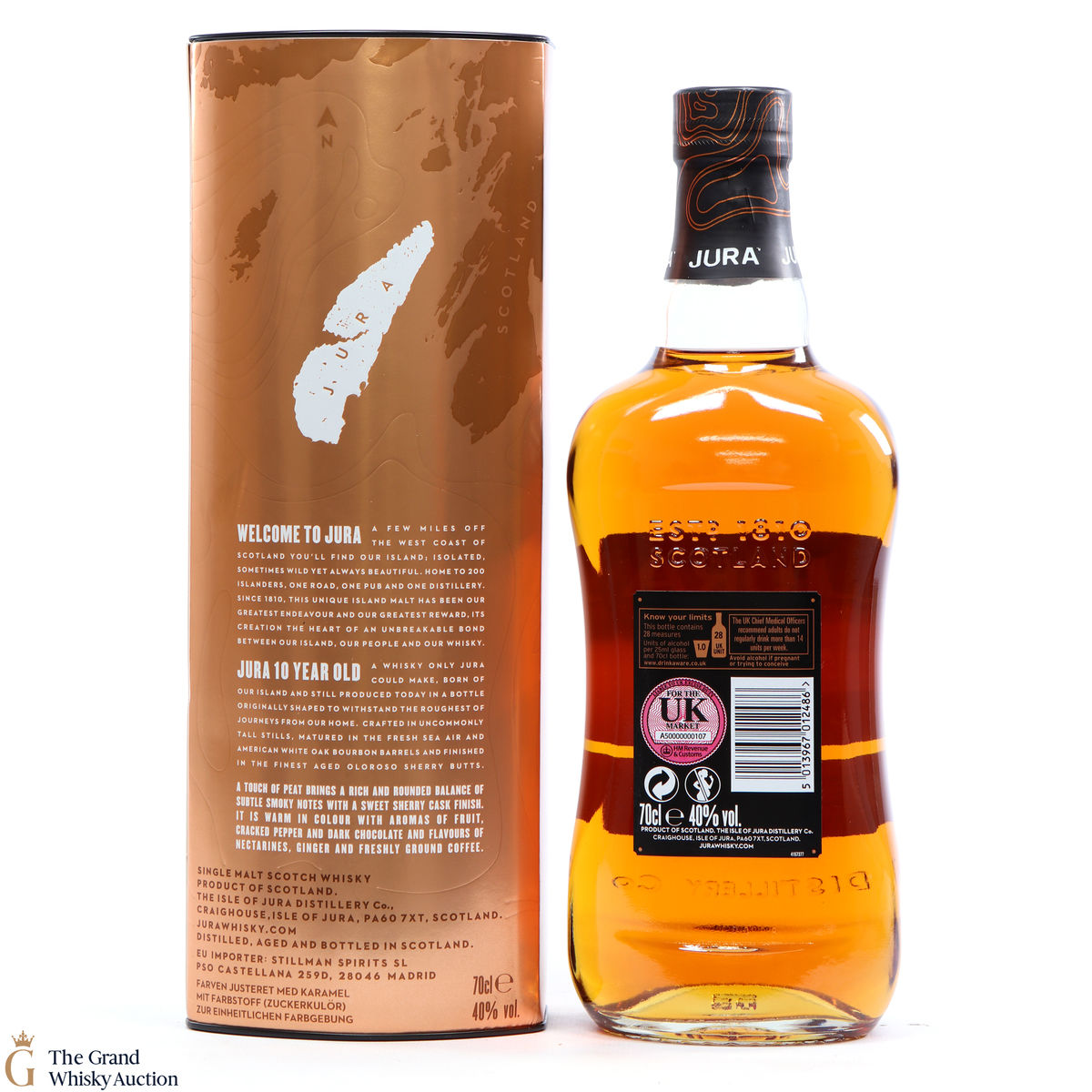 A bottle of Jura 10 Year Old. Originally built in 1810, the distillery fell into disrepair and wasn't revived until the 1960's by two local estate owners.