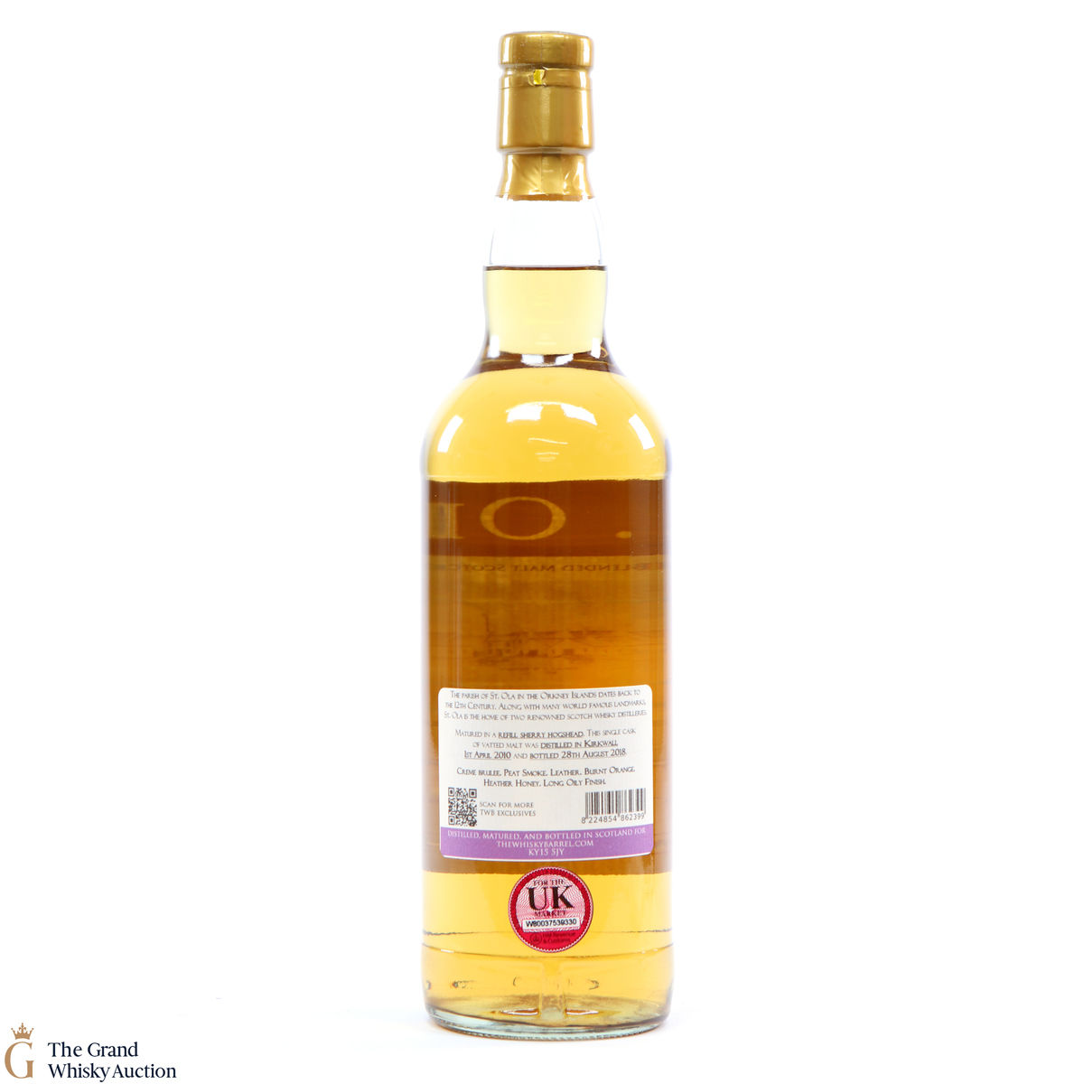 This blended Orcadian malt was matured in a refill sherry hogshead, this single cask of vatted malt was distilled in Kirkwall 1st April 2010 and bottled 28th August 2018 for The Whisky Barrel Ltd.