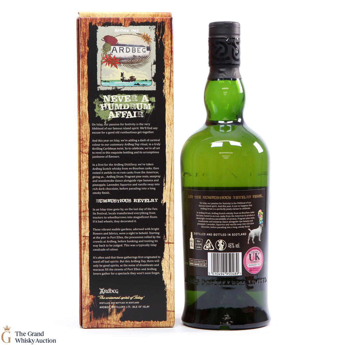 This is the 2019 Ardbeg Drum Limited edition. The Ardbeg Drum is a non-age-statement single malt matured in ex-Bourbon casks and then finished in ex-rum casks from the Americas. It was created to celebrate Ardbeg Day 2019 (June 1) held during the Islay Festival of Music & Malt (Fèis Ìle).