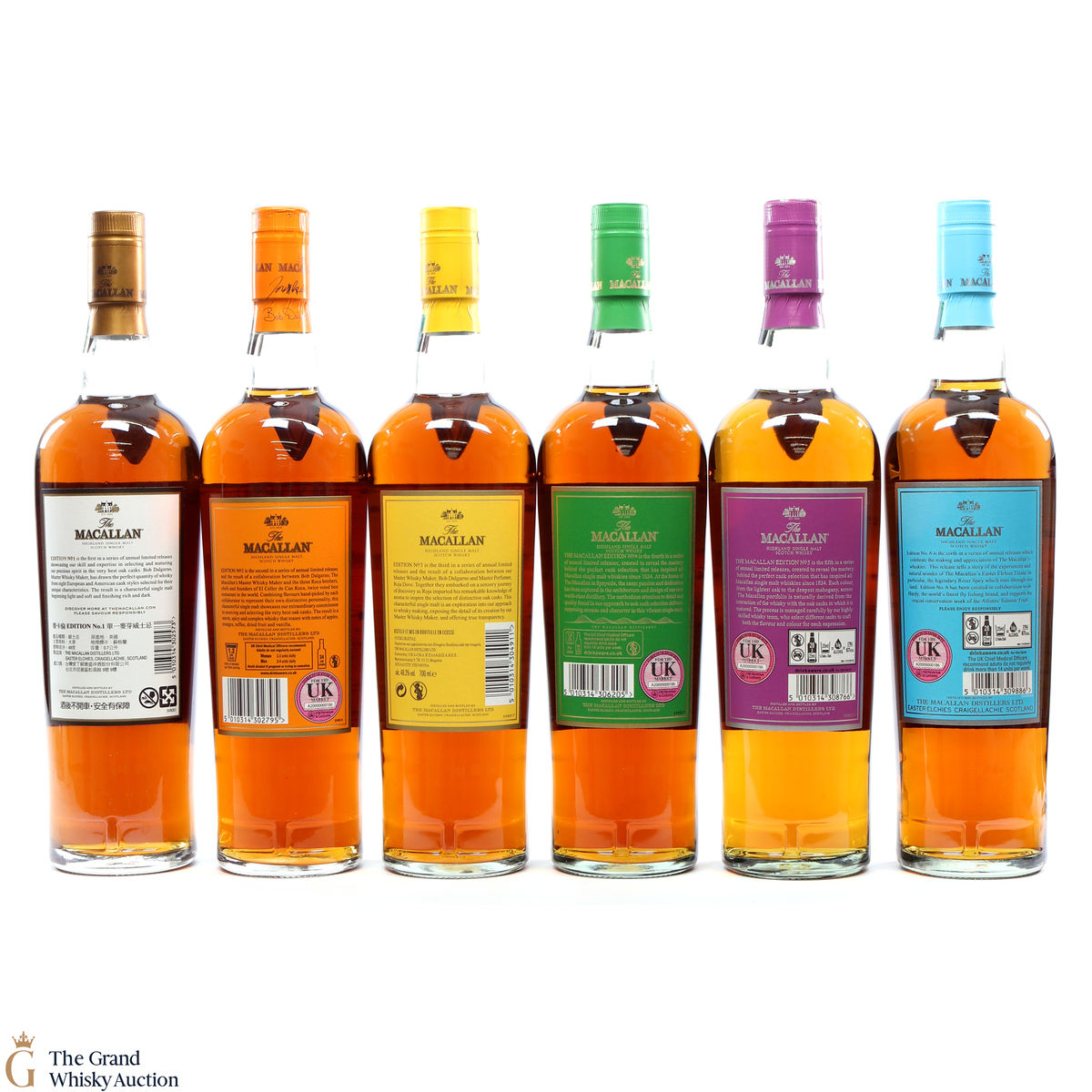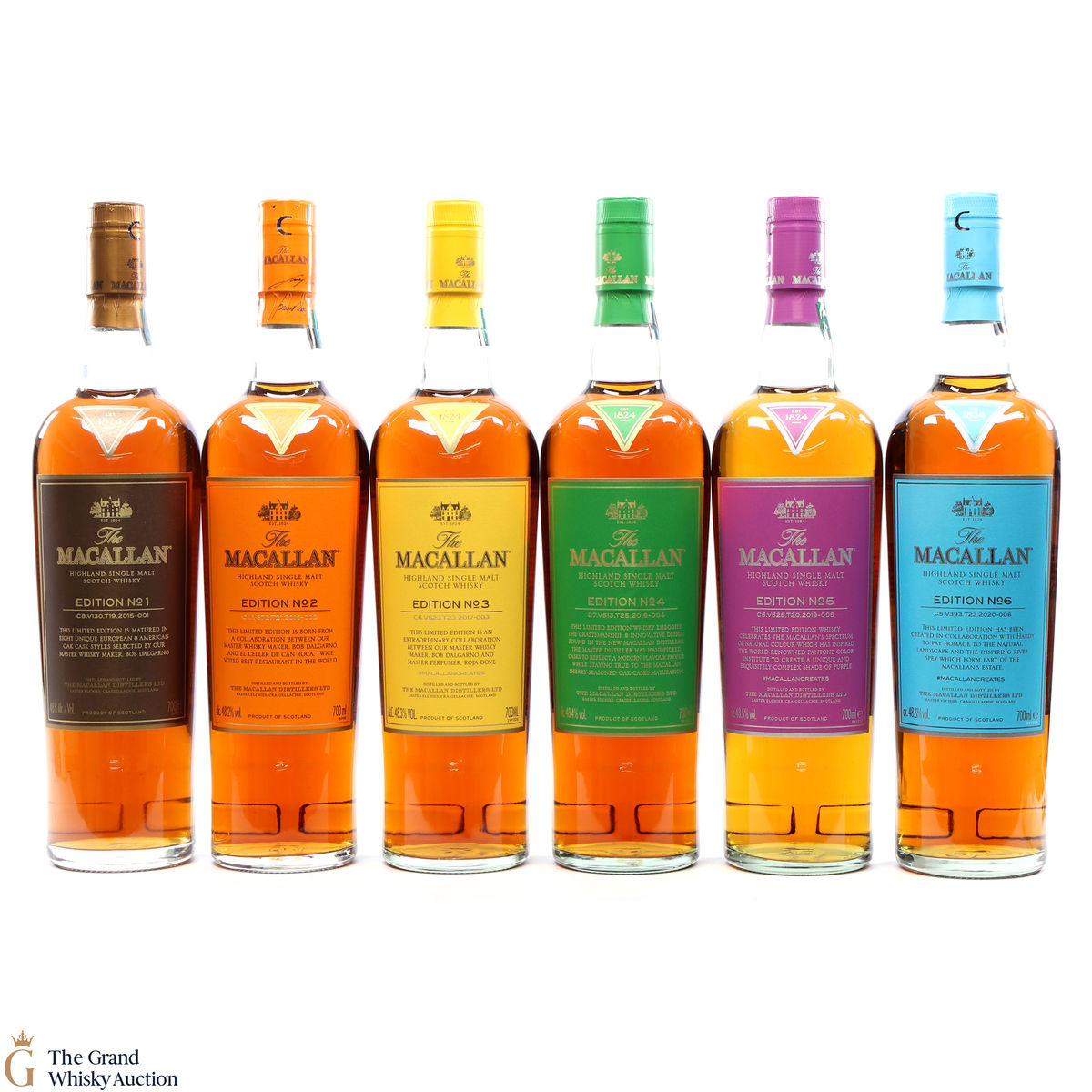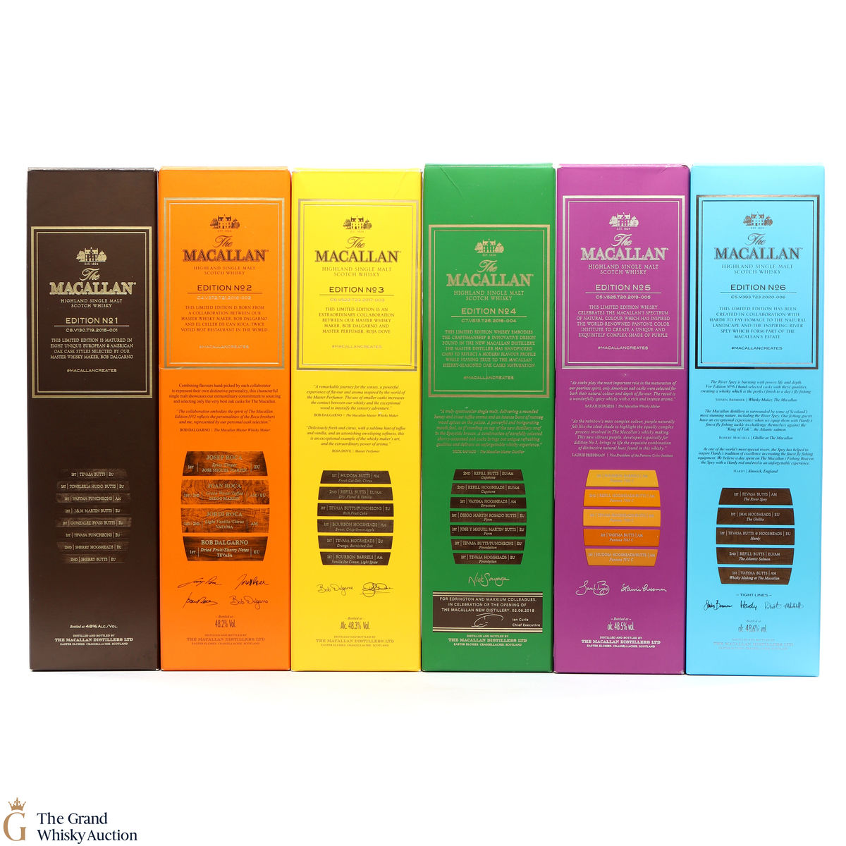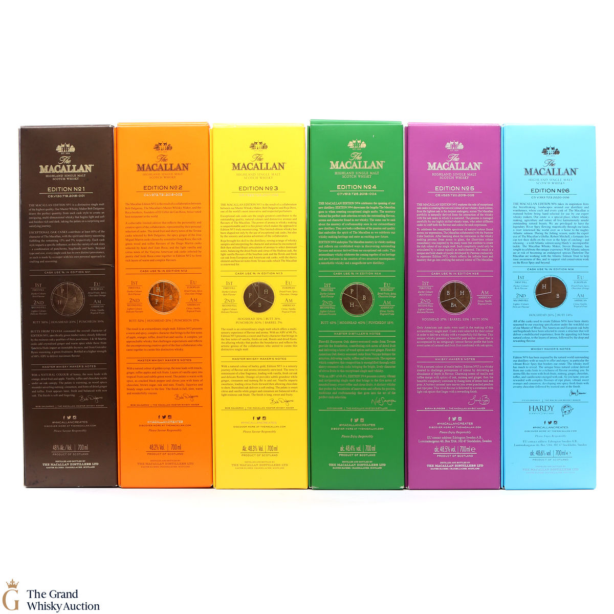 This lot brings together the Macallan Edition set to date, comprising of Edition no. 1, 2, 3 4, 5 & 6 in the annual limited edition series.