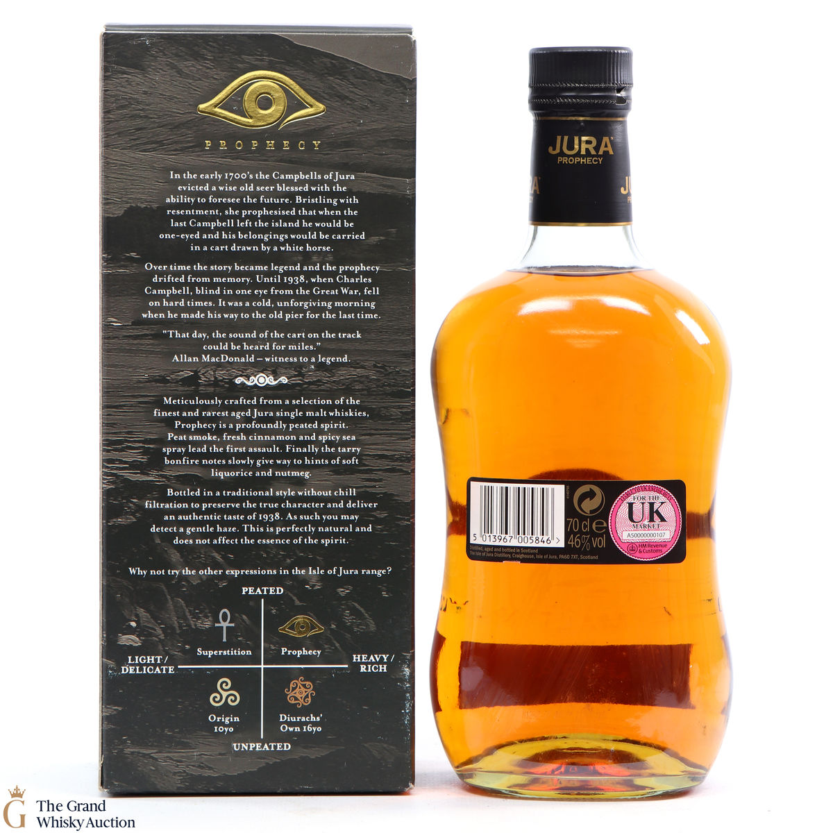 This limited annual release is a heavily peated edition from the Isle of Jura. Prophecy is made from a selection of old and rare Jura whiskies. Bottled in a traditional style at an ABV of 46% in a 70cl size.