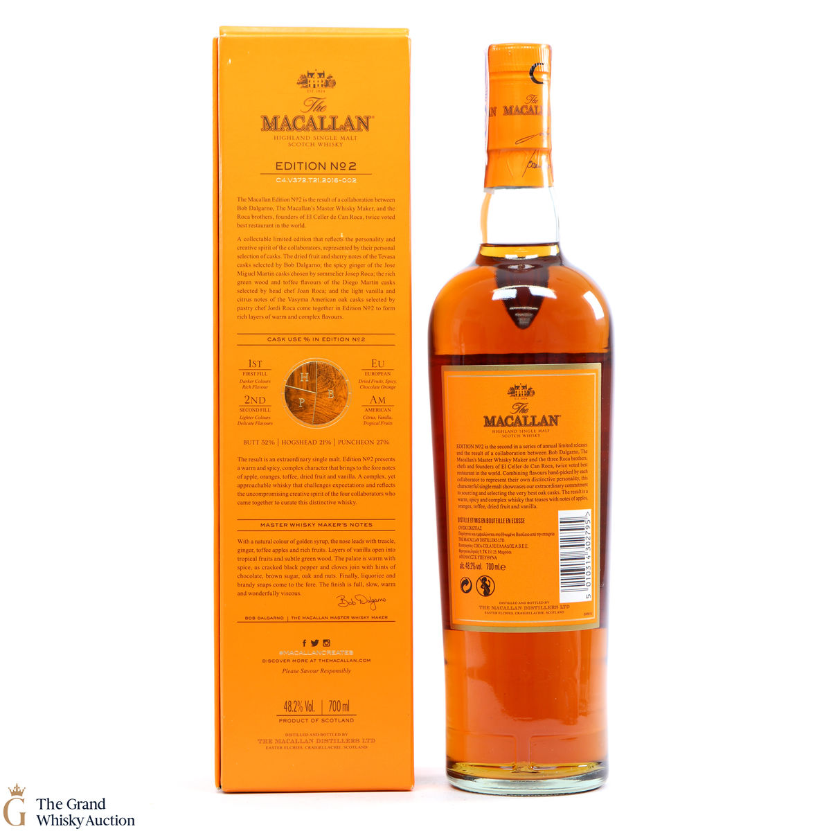This is the second release from the Macallan Edition series. Edition No.2 is a collaboration between Macallan's master blender Bob Delgarno and legendary Spanish chefs Joan, Josep, and Jordi Roca. The Rocas are the three brothers behind El Celler de Can Roca (named Best Restaurant in the World twice by Restaurant magazine). This single malt was drawn from a combination of sherry puncheons, butts, and refill hogsheads.