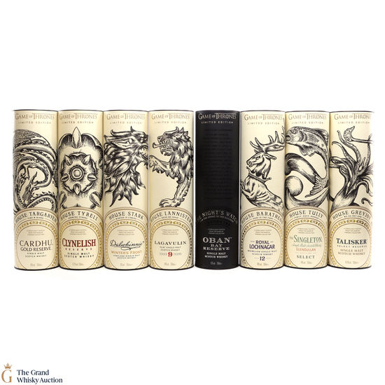 Each of the Game of Thrones Scotch whiskies has been paired with a particular house from the seven kingdoms in the television series, plus also the Night's Watch guard.