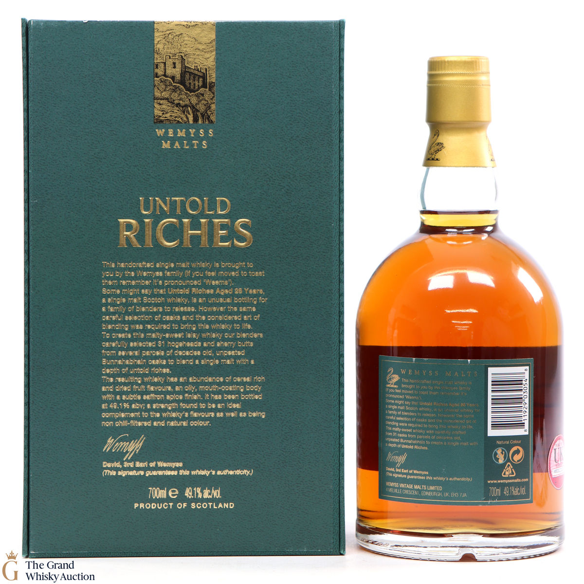 This handcrafted single malt is brought to you by the Wemyss family. Distilled at Bunnahabhain distillery, the Untold Riches 28 Year Old is a single malt held in hogsheads and sherry butts from several parcels of decades old, unpeated Bunnahabhain casks.