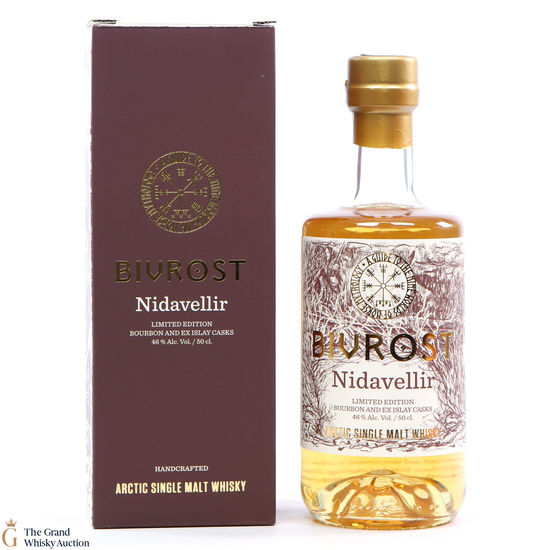 This is a limited edition bottle created in Arctic Norway was 'handcrafted under the Northern Lights'. Matured in bourbon casks and given a finishing period of 5-6 months in nicely seasoned, well-travelled casks. Bivrost Nidavellir is the second Whisky in the “nine worlds of Norse mythology” series. This is a 50cl bottling.