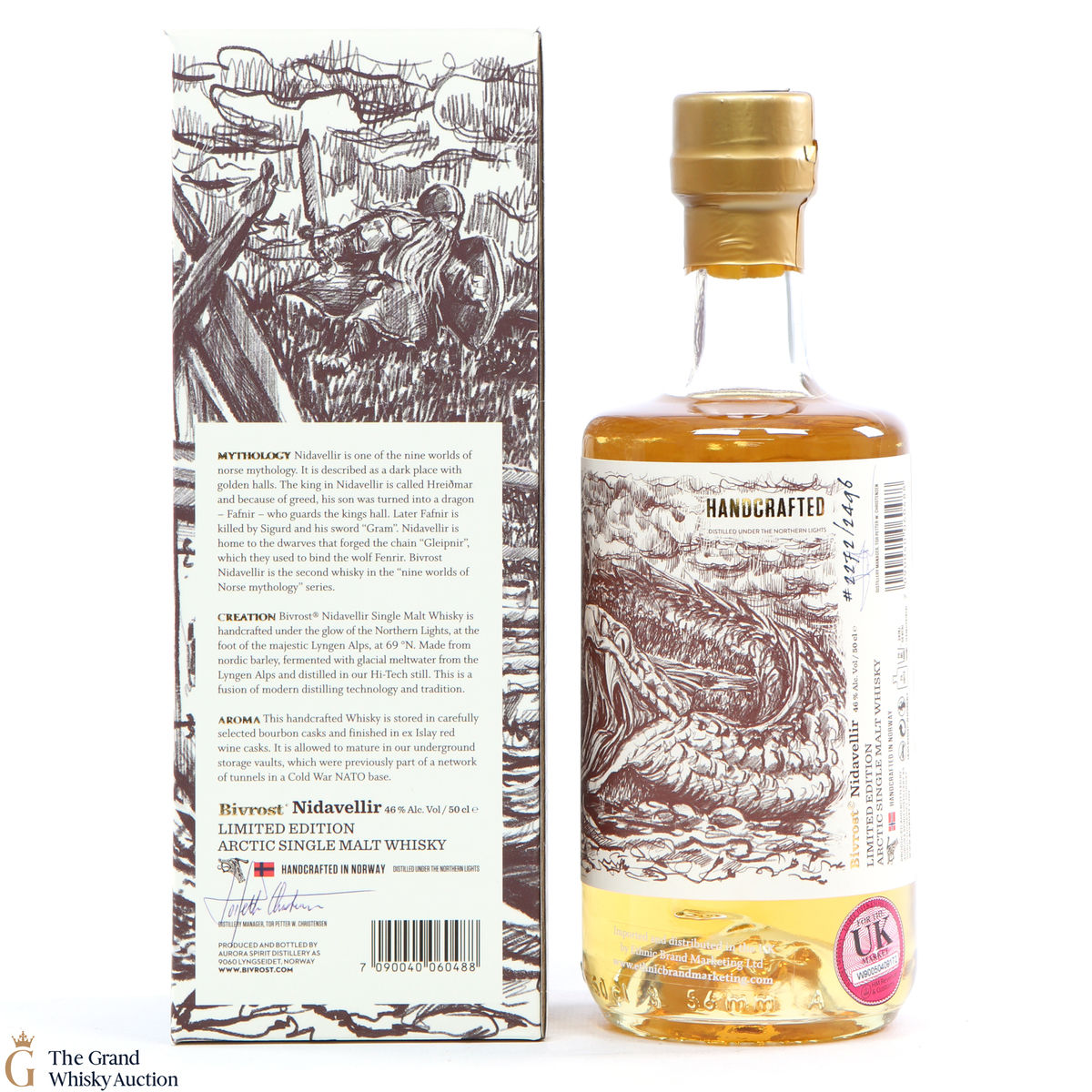 This is a limited edition bottle created in Arctic Norway was 'handcrafted under the Northern Lights'. Matured in bourbon casks and given a finishing period of 5-6 months in nicely seasoned, well-travelled casks. Bivrost Nidavellir is the second Whisky in the “nine worlds of Norse mythology” series. This is a 50cl bottling.
